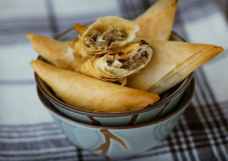 Last time when I finally found these fillo I bought more, so to have in stock :) Now these are the same triangles but with other filling - it's spicy beef and cheddar.